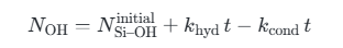 Bunlar arasında khyd hidroliz hızı sabitidir, kcond dehidrasyon yoğunlaşma hızı sabitidir ve arıtma süresidir. Bu model, hidroksil gruplarının ısıl işlem veya ıslak ısıl işlemle evrim eğilimini niceliksel olarak tanımlayabilir.